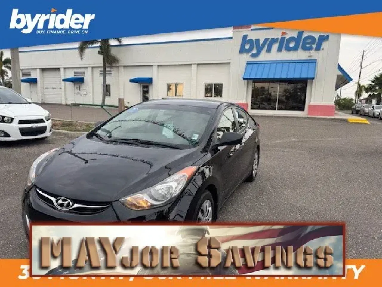 IIHS Top Safety Pick. Only 113,226 Miles! Scores 38 Highway MPG and 28 City MPG! This Hyundai Elantra boasts a Gas I4 1.8L/110 engine powering this Automatic transmission. STANDARD EQUIPMENT PKG 1, REAR BUMPER APPLIQUE, MUD GUARDS.*This Hyundai Elantra Comes Equipped with These Options *IPOD CABLE, GRAY, CLOTH SEAT TRIM, CARPETED FLOOR MATS, CARGO TRAY, CARGO NET, Windshield shade band, Warning lights -inc: oil pressure, battery charge, door ajar, seatbelt, low fuel, trunk lid open, brake, check engine, ABS, TPMS, ESC, water temp, Visor vanity mirrors, Vehicle stability management (VSM), Trunk lid inner cover.* This Hyundai Elantra is a Superstar! *IIHS Top Safety Pick, NACTOY 2012 North American Car of the Year, KBB.com 10 Best Sedans Under $25,000, KBB.com 10 Best Green Cars.* Expert Reviews!*As reported by KBB.com: If your price range says economy car, but your taste says sleek and stylish, the 2012 Hyundai Elantra may very well be the answer to your dilemma. Looking somewhat like a miniaturized Hyundai Sonata, the 2012 Hyundai Elantra sedan definitely outclasses just about everything in its segment, yet its low price, feature-laden standard-equipment list and large interior defy the compact-car image.* Visit Us Today *Stop by Byrider - FL154 located at 7701 Park Blvd, Pinellas Park, FL 33781 for a quick visit and a great vehicle!