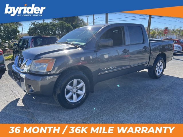 Delivers 18 Highway MPG and 13 City MPG! This Nissan Titan delivers a Gas/Ethanol V8 5.6L/ engine powering this Automatic transmission. SMOKE, CHARCOAL, SEAT TRIM, CHARCOAL, PRO-4X STYLE SEAT TRIM.* This Nissan Titan Features the Following Options *[K01] SV VALUE TRUCK PKG -inc: cloth bucket seats w/lockable center console, leather-wrapped floor mounted shifter, 8-way pwr driver seat, fold-flat passenger seat, fog lamps, Bluetooth hands free phone system, leather-wrapped steering wheel w/audio controls, auto-dimming rearview mirror w/integrated compass, rear sonar, class IV receiver hitch, 7-pin wiring harness, trailer brake pre-wiring, front/rear floor mats, rear passenger HVAC vents , [B93] SPLASH GUARDS, [A93] BEDLINER, Vehicle speed-sensitive pwr rack- and -pinion steering, Vehicle immobilizer system, Vehicle dynamic control (VDC), Variable intermittent windshield wipers, Tire pressure monitoring system, Sun visors w/extenders and illuminated visor vanity mirrors, Security alarm system.* The Experts' Verdict...*As reported by KBB.com: If youre looking for an alternative to the commonplace Ford, Ram or Chevy offerings, the 2012 Nissan Titan truck offers a unique twist on the full-size pickup formula, with bold styling and a proven record of resale and reliability.* Stop By Today *Stop by Byrider - FL139 located at 1285 Cassat Ave, Jacksonville, FL 32205 for a quick visit and a great vehicle!