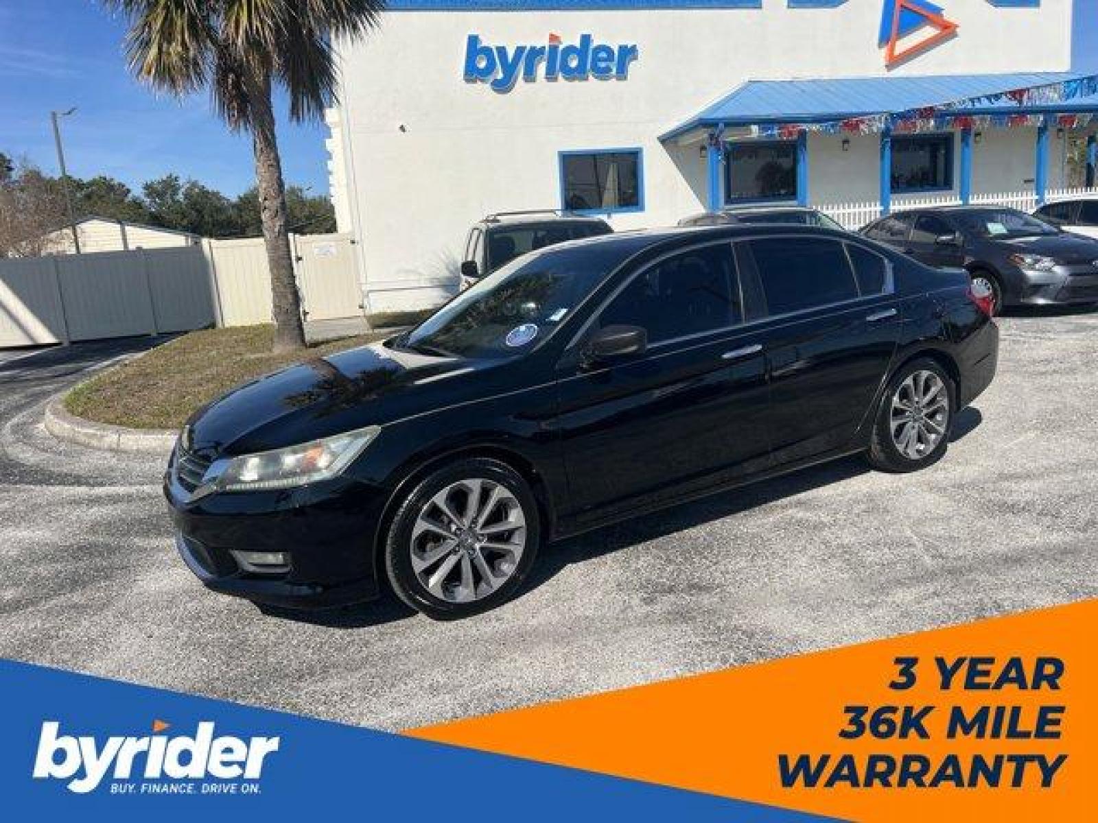 IIHS Top Safety Pick+. Scores 34 Highway MPG and 26 City MPG! This Honda Accord Sedan boasts a Regular Unleaded I-4 2.4 L/144 engine powering this Variable transmission. Window Grid Antenna, Wheels: 18 Alloy, Vinyl Door Trim Insert.* This Honda Accord Sedan Features the Following Options *Valet Function, Urethane Gear Shifter Material, Trunk Rear Cargo Access, Trip Computer, Transmission: Continuously Variable w/Sport Mode -inc: paddle shifters, Transmission w/Driver Selectable Mode, Tires: P235/45R18 94V AS, Strut Front Suspension w/Coil Springs, Steel Spare Wheel, Speed Sensitive Variable Intermittent Wipers.* The Votes are Counted *IIHS Top Safety Pick+, Green Car Journal 2014 Green Car of the Year, KBB.com Brand Image Awards.* The Experts' Verdict...*As reported by KBB.com: Beyond its history of reliability and high resale value, the Accord is now more varied than ever. Whether you want a no-fuss and highly economical sedan, a sporty V6-powered coupe or a hybrid that attains 50 mpg in the city, the 2014 Accord offers something for everyone.* Stop By Today *A short visit to Byrider - FL162 located at 8829 US Hwy 19, Port Richey, FL 34668 can get you a tried-and-true Accord Sedan today!