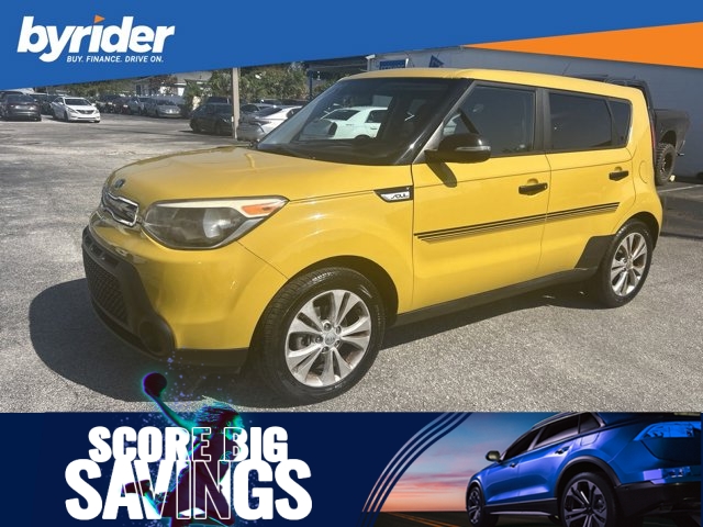 KBB.com 10 Coolest New Cars Under $18,000. Boasts 31 Highway MPG and 23 City MPG! This Kia Soul delivers a Regular Unleaded I-4 2.0 L/122 engine powering this Automatic transmission. UMBER BLACK, PREMIUM NAPPA LEATHER SEAT TRIM -inc: umber colored stitching, SPARE TIRE, SOLAR YELLOW.*This Kia Soul Comes Equipped with These Options *CARPETED FLOOR MATS, BLACK, UPGRADED CLOTH SEAT TRIM, BLACK, LEATHER SEAT TRIM, Wheels: 17 x 6.5J Alloy, Variable intermittent wipers, Urethane Gear Shifter Material, Upgraded cloth seat trim, Trip computer, Transmission: 6-Speed Automatic -inc: active eco system and Sportmatic shifting, Torsion beam rear suspension w/coil springs.* The Votes are Counted *KBB.com 10 Coolest New Cars Under $18,000, KBB.com Brand Image Awards.* See What the Experts Say!*As reported by KBB.com: Kia has nailed the daring-but-darling design aesthetic with the 2014 Soul. People love the look of the Soul, and were guessing you might too. As a bonus that cute exterior houses a surprisingly plush interior for the price and more passenger space than you might imagine.* Visit Us Today *For a must-own Kia Soul come see us at Byrider - FL139, 1285 Cassat Ave, Jacksonville, IN 32205. Just minutes away!