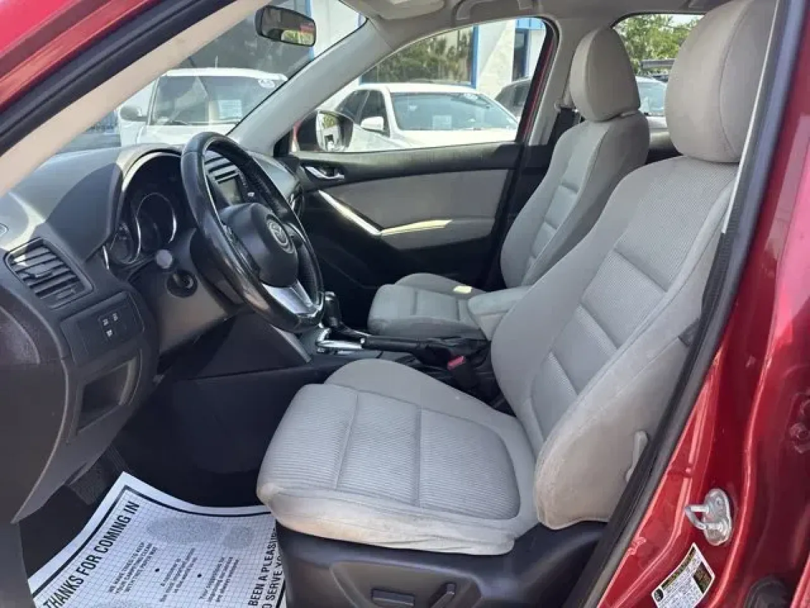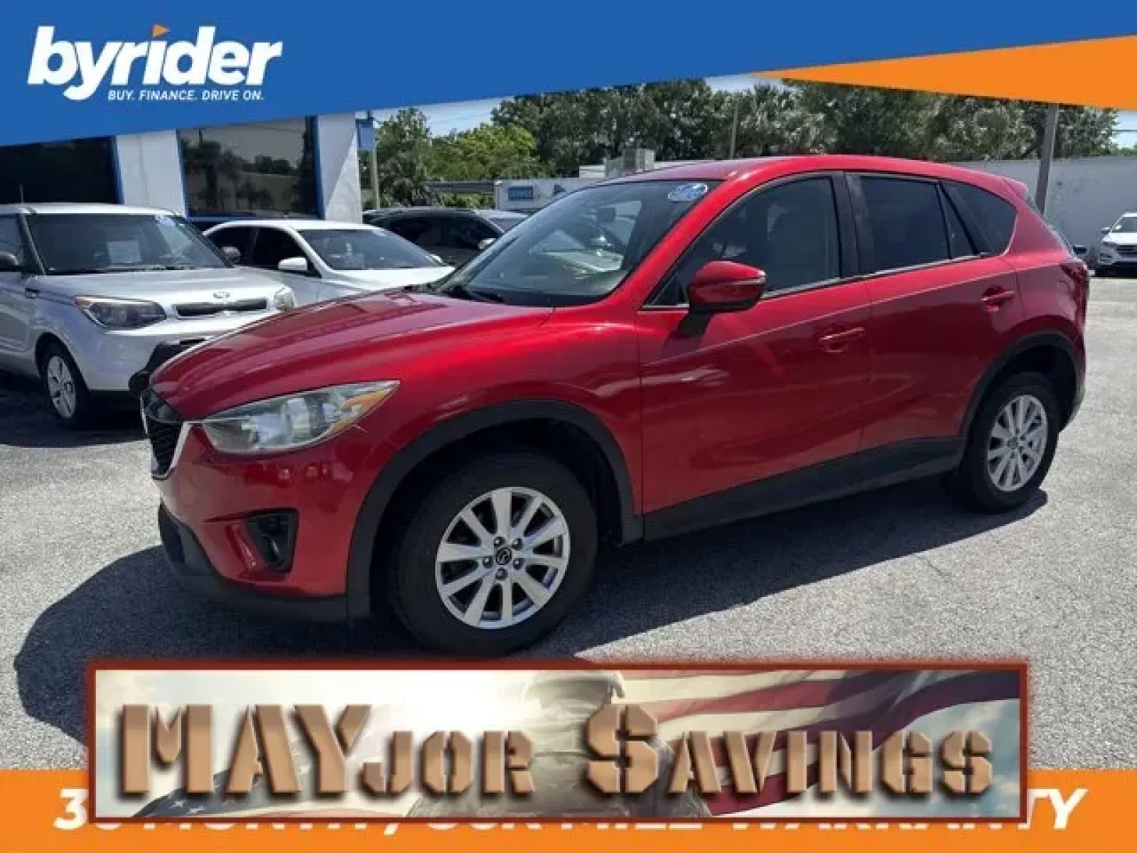 IIHS Top Safety Pick+. Boasts 32 Highway MPG and 25 City MPG! This Mazda CX-5 delivers a Regular Unleaded I-4 2.5 L/152 engine powering this Automatic transmission. WHEEL LOCKS, SOUL RED METALLIC PAINT, Wheels: 17 x 7J Aluminum Alloy.*This Mazda CX-5 Comes Equipped with These Options *Wheels w/Silver Accents, Variable intermittent wipers, Trip computer, Transmission: 6-Spd SKYACTIV-DRIVE Sport Mode Auto -inc: manual mode, Tires: P225/65R17 AS, Tailgate/Rear Door Lock Included w/Power Door Locks, Strut Front Suspension w/Coil Springs, Steel Spare Wheel, Sport Shape Front Seats -inc: 6-way power adjustable driver's seat w/manual lumbar support, Side Impact Beams.* This Mazda CX-5 is a Superstar! *IIHS Top Safety Pick+, KBB.com Brand Image Awards.* See What the Experts Say!*As reported by KBB.com: If you demand that your 5-passenger compact SUV looks great, gets good fuel economy and delivers good value, then you should take the 2015 Mazda CX-5 for a test drive. Its fun to drive nature seals the deal.* Stop By Today *Come in for a quick visit at Byrider - FL139, 1285 Cassat Ave, Jacksonville, FL 32205 to claim your Mazda CX-5!